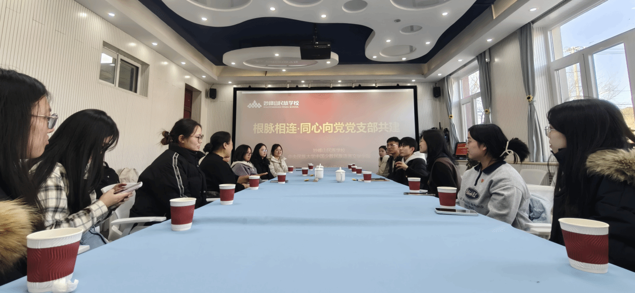 座谈会上,袁辰霞书记介绍了学院的党建、学科专业与人才培养工作情况,王蕾校长详细介绍了妙峰山民族学校实践育人的具体举措和取得的成效。双方还针对党支部共建、大中小思政一体化、铸牢中华民族共同体意识教育实践等议题进行了交流探讨。
