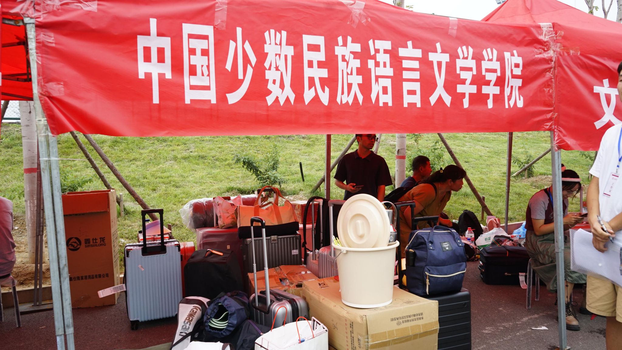 行李处,学长在帮萌新们搬行李。