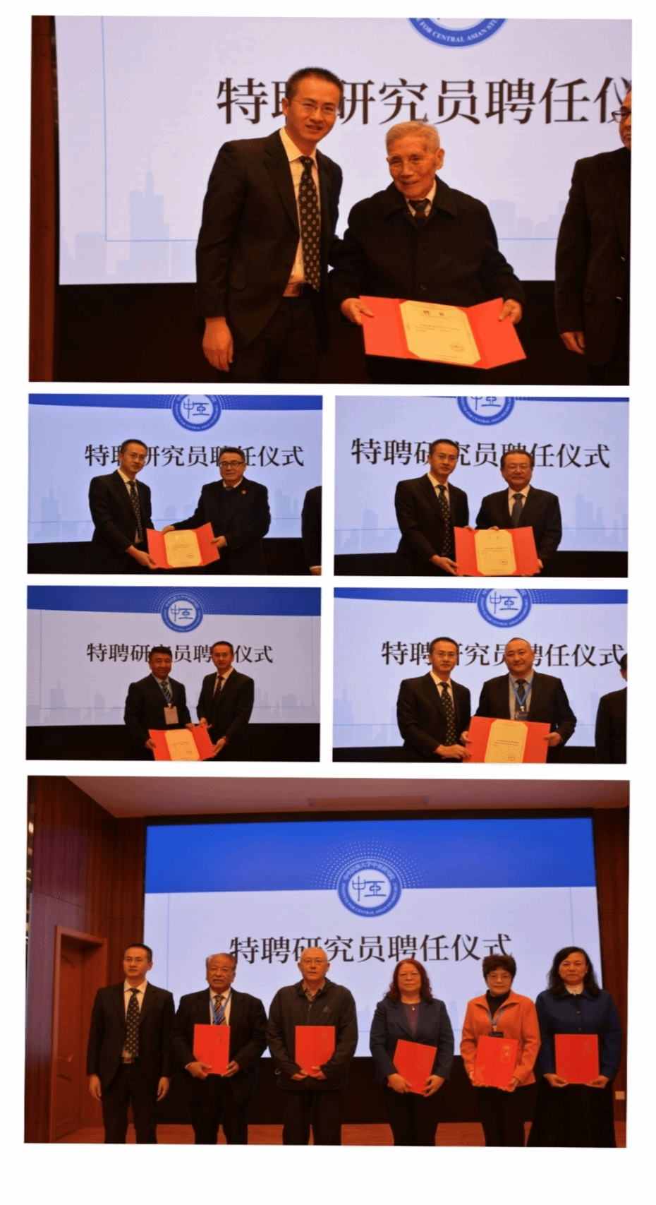 中亚学研究专家力提甫·托乎提、张定京、张娜、海淑英和苗东霞等与会特聘研究员代表颁发聘书。