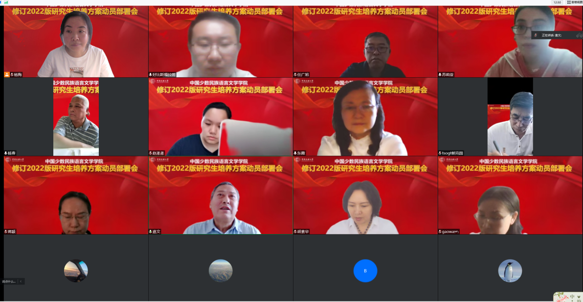 语言学及应用语言学、中国少数民族语言文学、中国古典文献学、比较文学与世界文学四个二级学科专业的研究生导师组组长均出席了会议,学院研究生教学分管副院长好比斯嘎拉图结合民大校发[2022年]39号《成人软件
