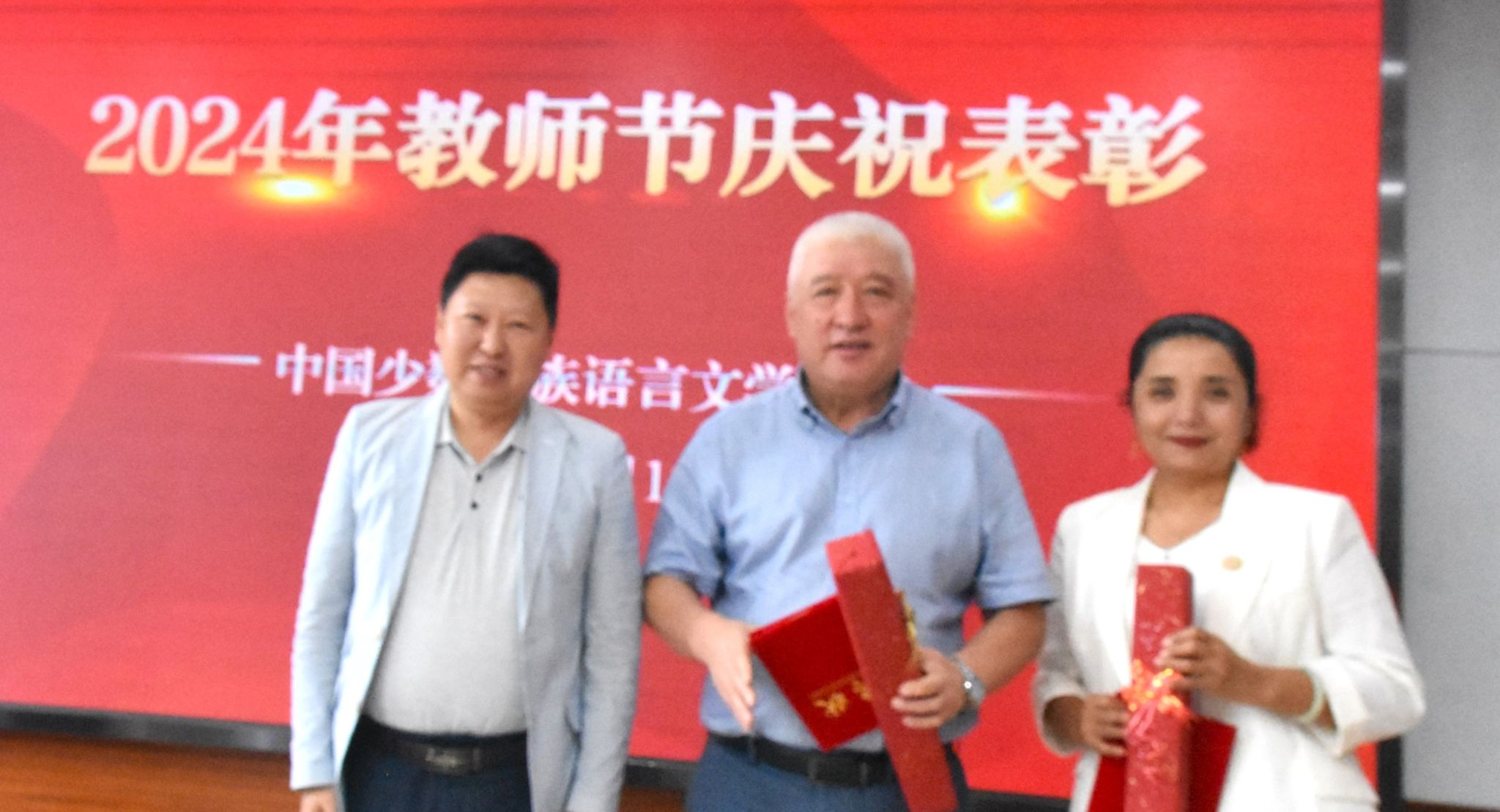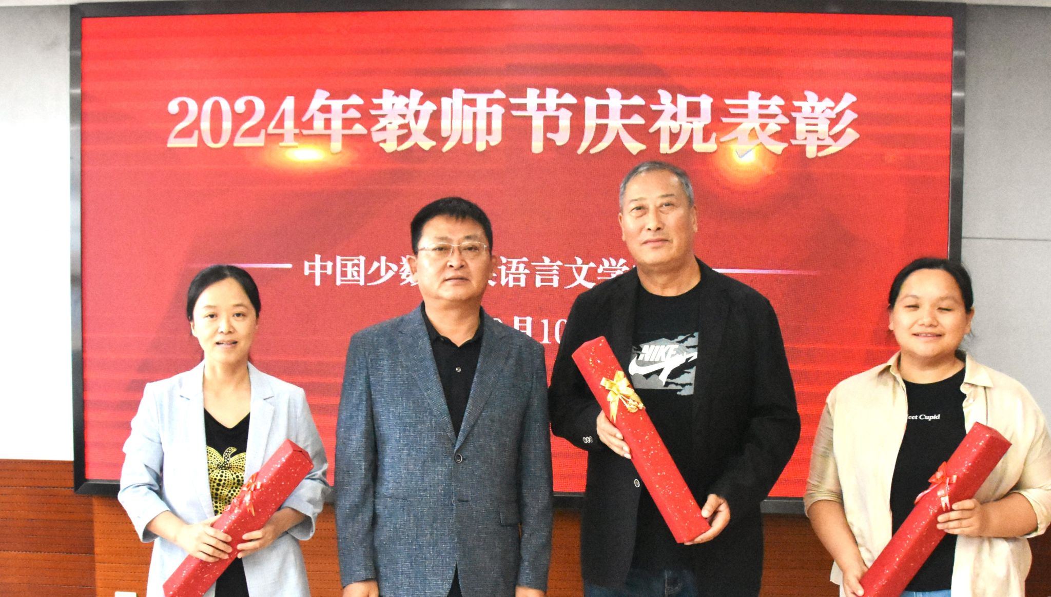 副院长金青龙、王利萍和副书记仁乃杰分别宣读表彰名单,学院领导、党委委员、教授委员会和教代会委员分别为获得国家一流本科课程、国家通用语言文字推广普及先进个人、北京高校优质课程、北京市大学生人文知识竞赛突出贡献奖、北京市优秀学位论文指导教师,参加上级单位各类工作和学校外派培训工作等方面表现优秀的教师颁发证书。