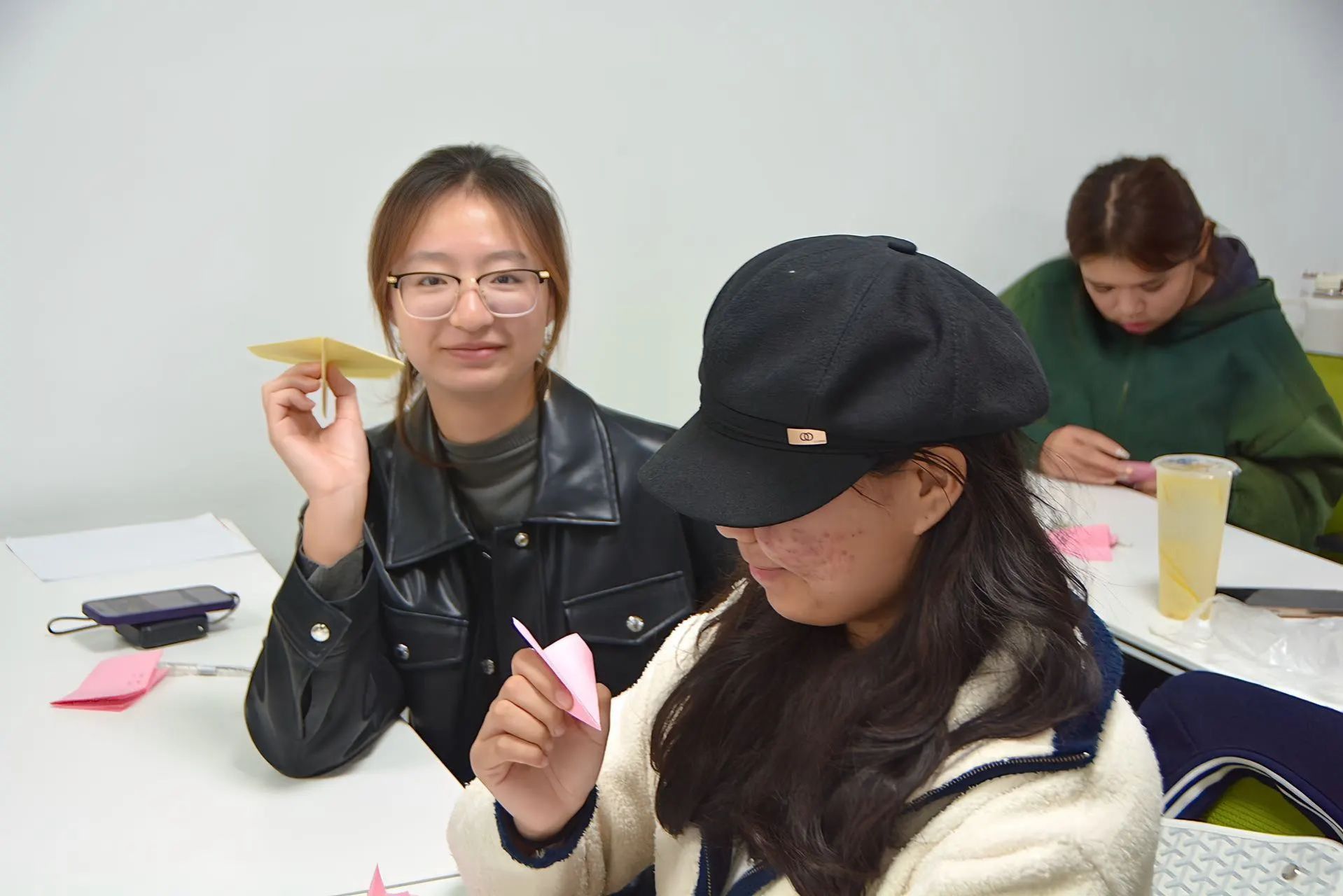 同学们将本次交流会的收获与对未来的畅想写在纸上,并折成了纸飞机。