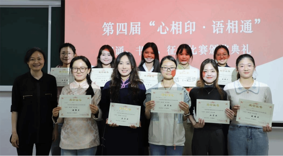 现场进行了颁奖典礼,学院党委书记袁辰霞作总结发言。她对获奖的同学表示祝贺,肯定大家的精心备赛与精彩表现,并寄语“心相印・语相通”系列活动深耕发展,打造学院特色品牌,为师生搭建更优质的交流展示平台。