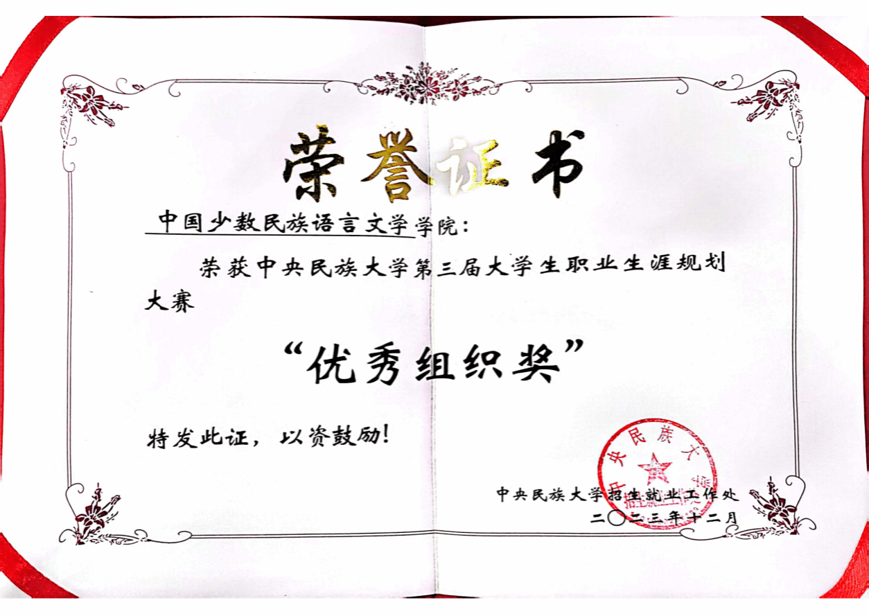 2022级本科生柴乐根脱颖而出,被推荐至北京市参赛。柴乐根同学的参赛作品《构筑梦想的青春,规划航向职业成功》结合自己所学专业、实践经历和对于相关行业的探索,思考设计了未来的职业发展路径,展现了少语学院学生较高的专业素养、创新意识和实践能力。