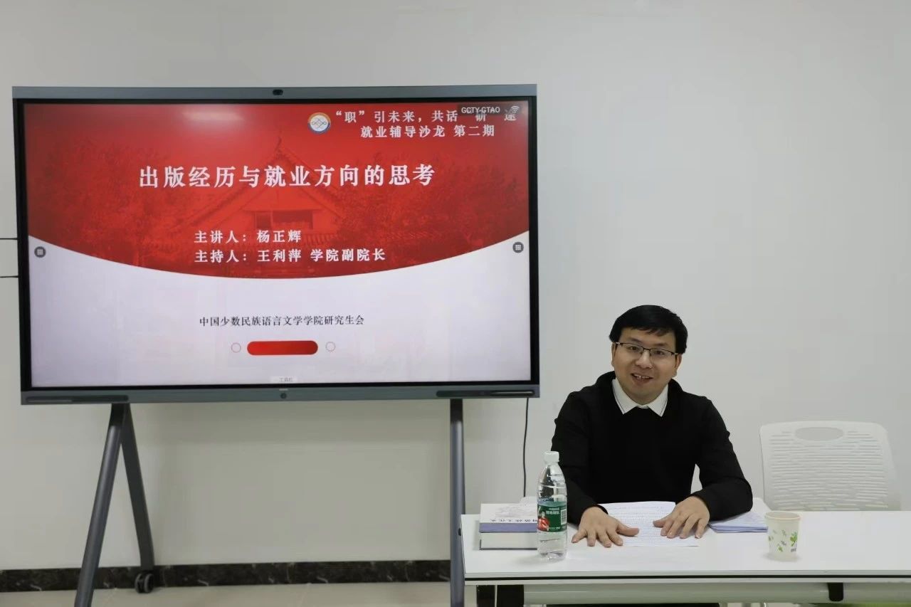 “‘职’引未来,共话‘研’途”就业辅导沙龙2025年第二期在明德楼 346 教室圆满举行。本期沙龙以《出版经历与就业方向的思考》为主题,特邀 2016 级硕士院友、贵州民族出版社资深编辑杨正辉担任主讲嘉宾,学院副院长王利萍主持,为学子们搭建起专业与职业对接的深度交流平台。